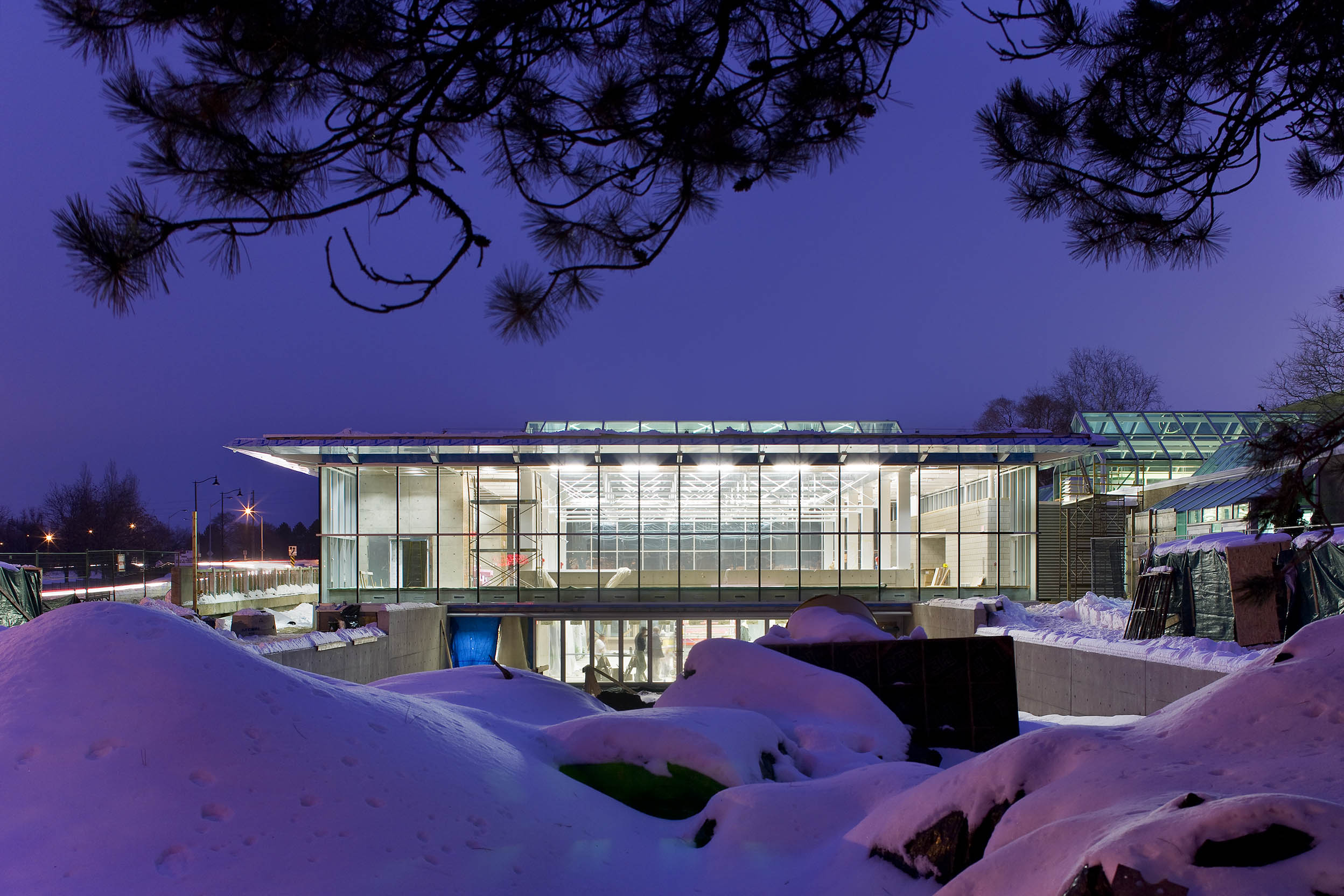 - Highlights: Salvaged Queenston Limestone reused internally, complex caisson shoring wall, and a glazed roof supported by an innovative structural framework