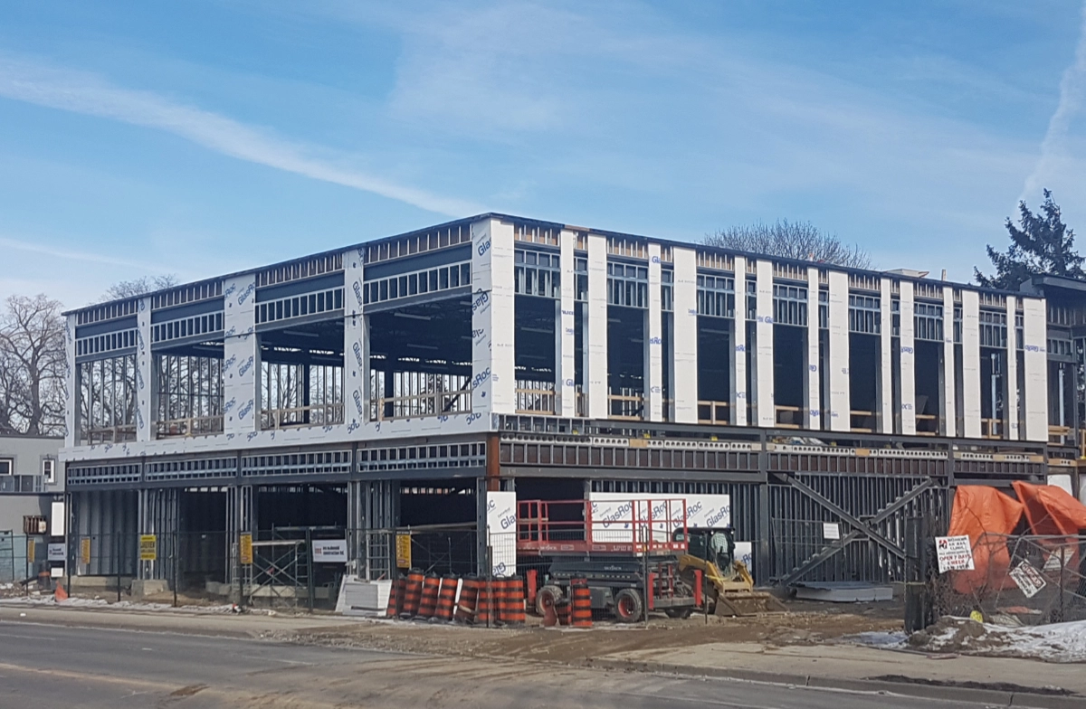 The scope of work included the demolition of an existing residential structure, site excavation and grading, installation of an infiltration gallery, and construction of new site services. The building was constructed with concrete foundations, a steel structure, and an exterior envelope composed of stucco and stone systems. Interior fit-up work was completed for over 2,000 sq. ft. of tenant space.
