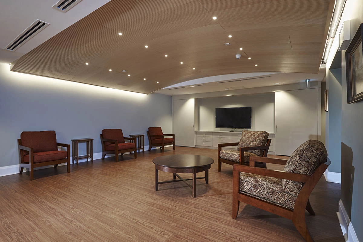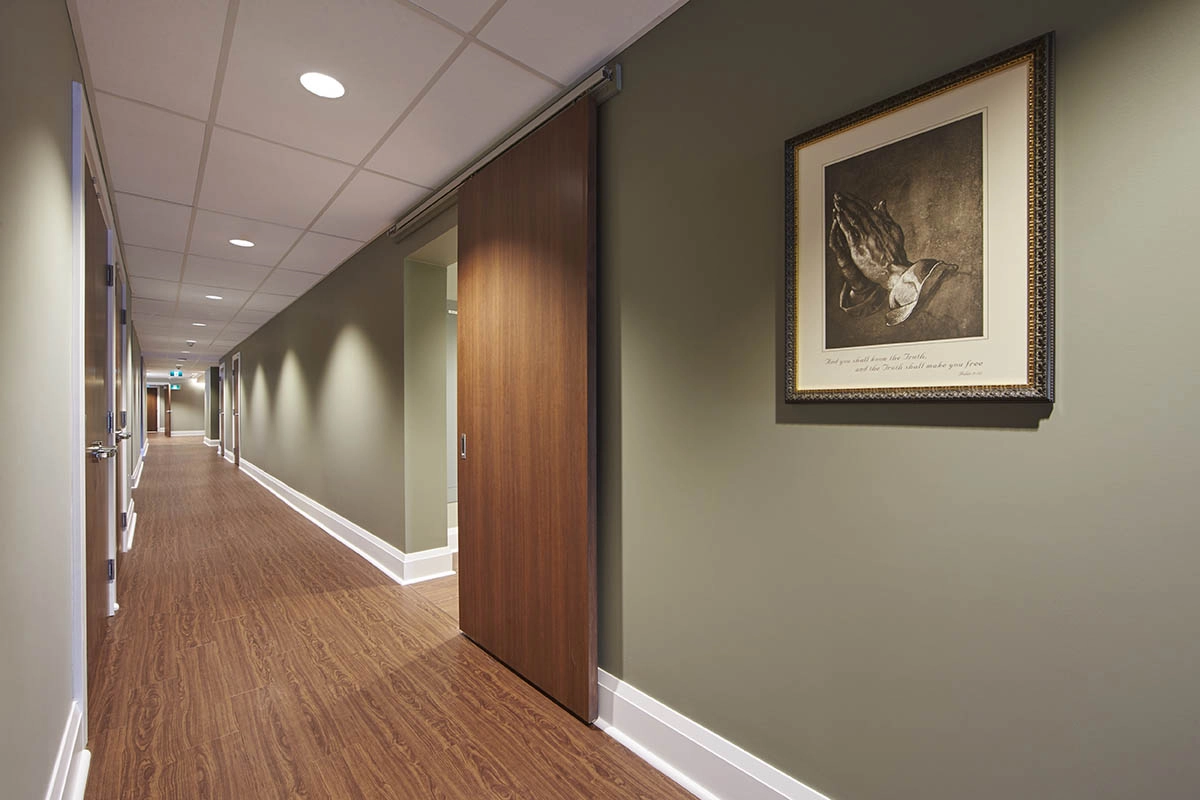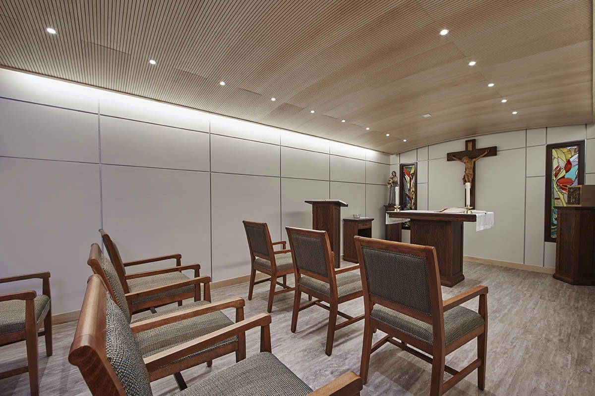 In collaboration with the Hamilton Diocese, this 8,200-square-foot East Wing renovation was designed to provide a comfortable and welcoming home for retired Diocese priests at St. Joseph’s Villa in Dundas, Ontario.
