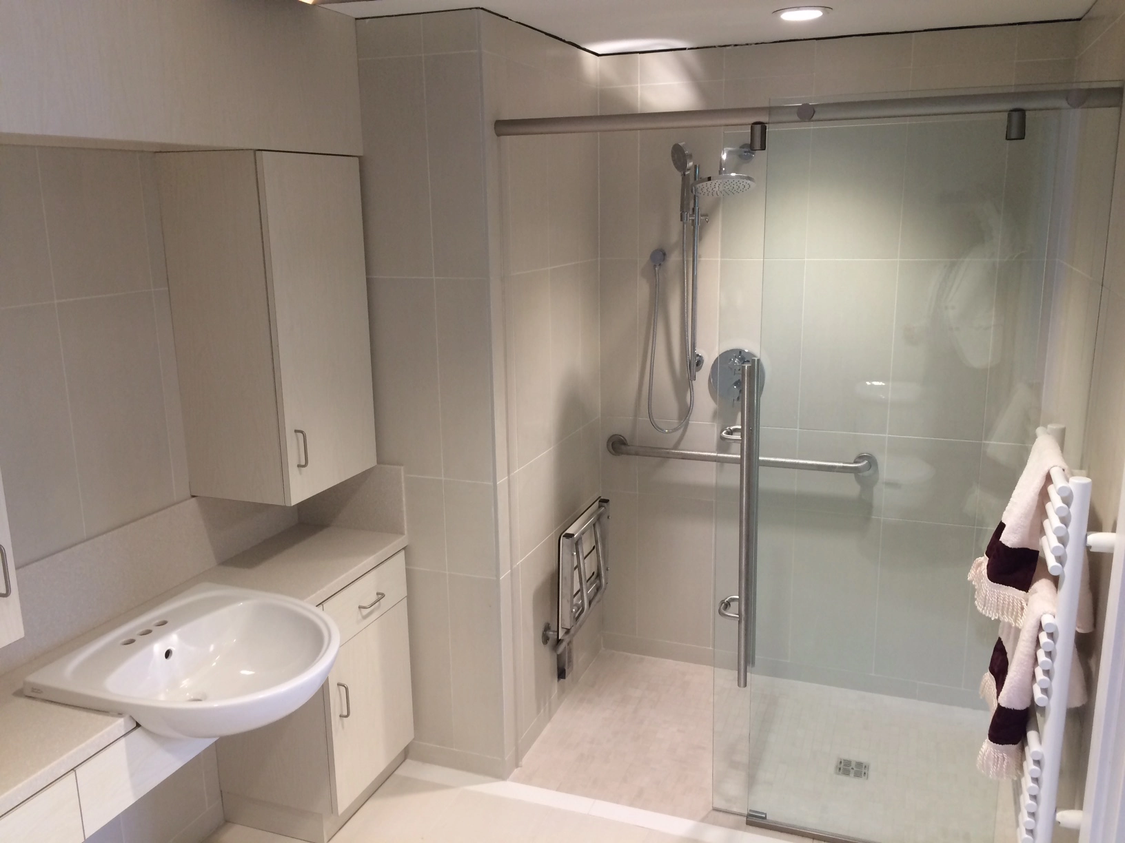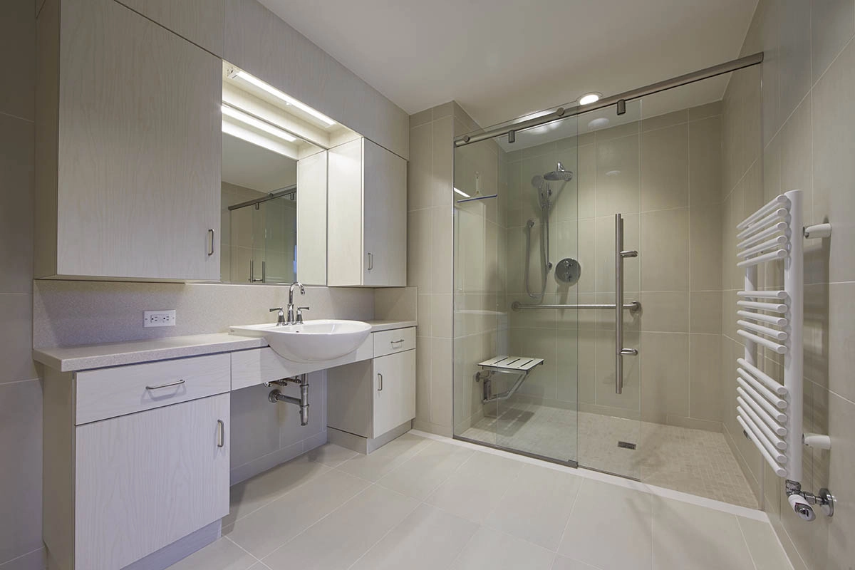- Renovation of eight private apartments with elegant finishes and a focus on barrier-free washroom design, incorporating grab bars and non-slip surfaces for safety and accessibility.